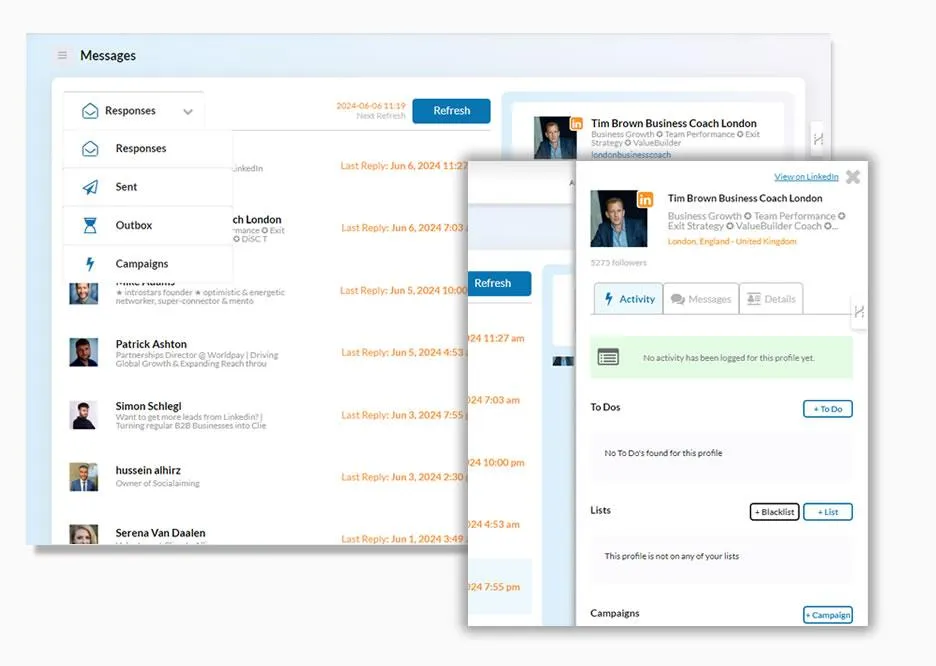 This feature ensures you stay in control of your LinkedIn outreach, without getting overwhelmed by managing multiple conversations.